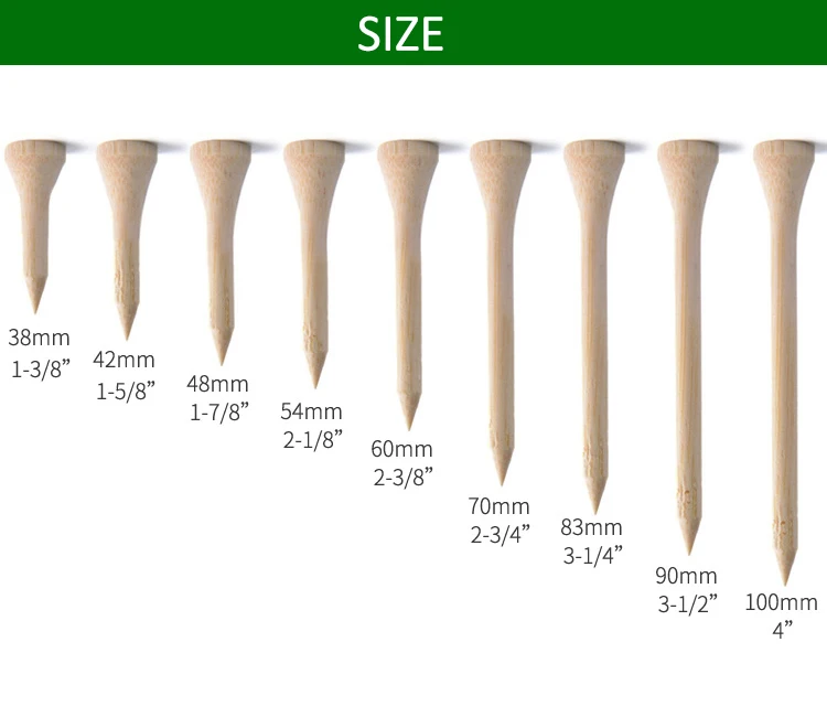 - Multiple Sizes for Every Club: Available in sizes ranging from 38mm to 100mm, our tees accommodate every club in your bag. Whether you're driving with a wood or iron, there's a perfectly sized tee waiting for you.