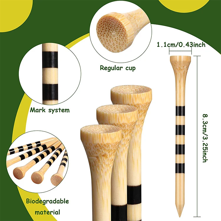 Opting for our bamboo golf tees not only supports your golf game but also the planet. Bamboo is a fast-growing, sustainable resource that offers a sturdy alternative to wood, helping reduce your ecological footprint one tee at a time.