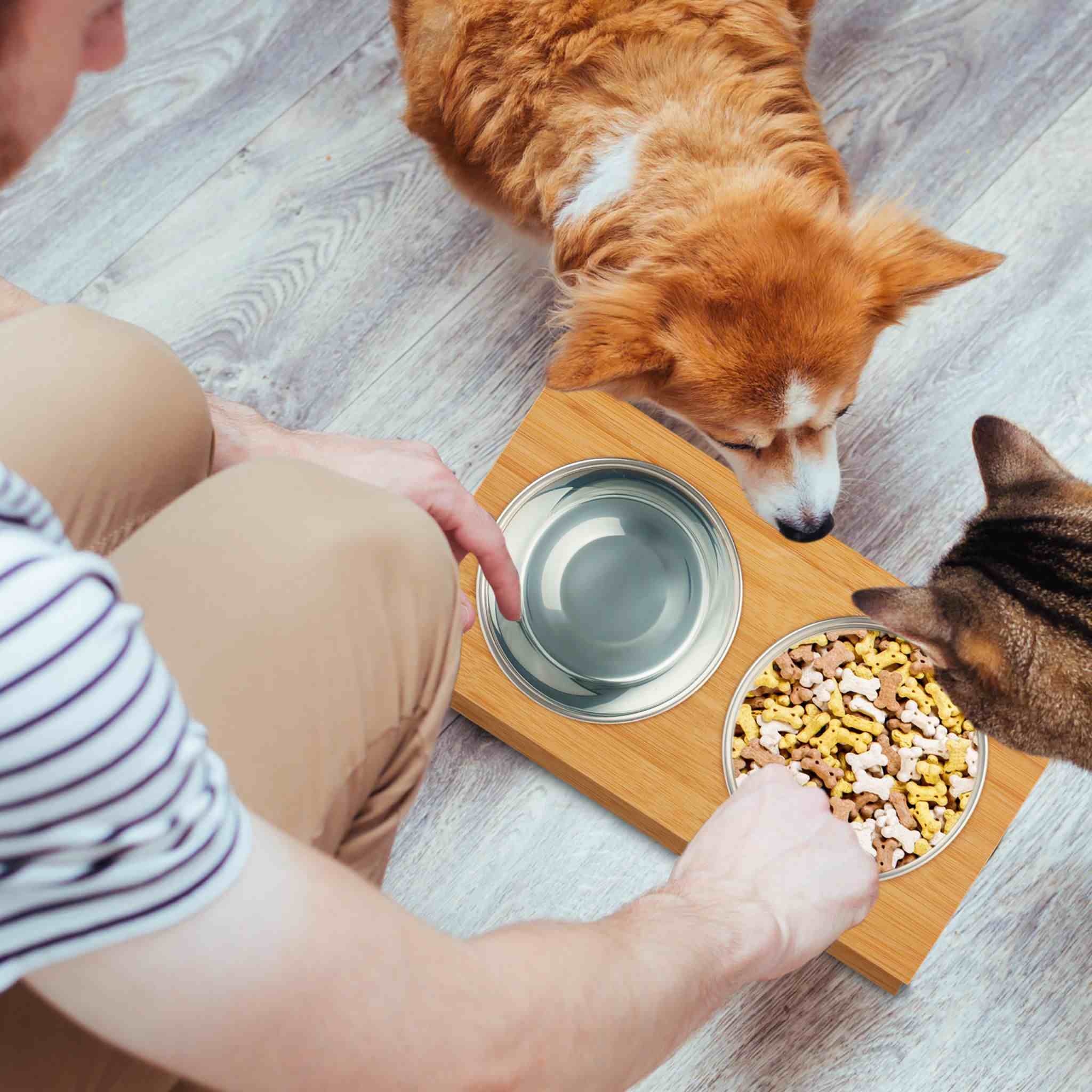 Experience the Ultimate in Pet Dining with Our Bamboo Elevated Pet Bowl Stand, Perfect for Small Dogs and Cats